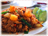 パイナップルのフライドライスは全体的にピリッと辛い味付けだが、パイナップルの甘さがたまらない。彩りも良く、味も日本人好み。これも、辛さの度合いが選べる。