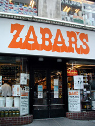 まず、80丁目にある「Zabar's(ゼイバース)」。外から見ると古くて飾り気のない店ではあるが、マンハッタンでも有名な高級食材店。店内は狭くて混雑しているが、新鮮なキャビア、スモークフィッシュ、また400種類以上もあるというチーズの品揃えには圧倒される。