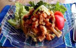 「カサ・デ・カンポ」の敷地内には、約15のレストランが点在しており、長く滞在しても飽きないようになっている。私の一押しは、ミニタスビーチにあるシーフードレストラン「ElPescador」。ビーチに面したオープンエアーの気軽なレストランであるが、期待せずに夜マヒマヒやシーフードスパゲッティ−を食べたらとても美味しくて、次の日のお昼にもまた来てしまった。パイナップル入りハワイアンピザとシーフードサラダを頼んだが、サラダには、エビ、カニ、コンチ貝、ホタテ、アボカド、マンゴーが入り、意外な組み合わせながらもバルサミコシトラスドレッシングで上手に味がまとめられていた。また、メニューにはなかったが、新鮮なパイナップルを切って出してもらったら、甘くジュ−シーで大満足であった。