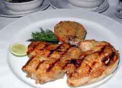 2番目のお薦めは、ホテルのメインエリアにあり、プールに面しているステーキハウス「Tropicana」。こちらもオープンエアーで、周囲には緑が多く、ヤシの木やヤシの葉で葺いた屋根がカリブの雰囲気を演出している。人気があり混んでいるので、早めに予約を取ることをお勧めする。私は3回トライしてやっとディナーの予約が取れました。オーダーしたグリルドチキンは、ライムジュースとハーブで味付けされあっさりとしており、素材の味が生かされていた。フォーマルなレストランなのでドレスコードがあり、短パンなどでは行かないようにね。